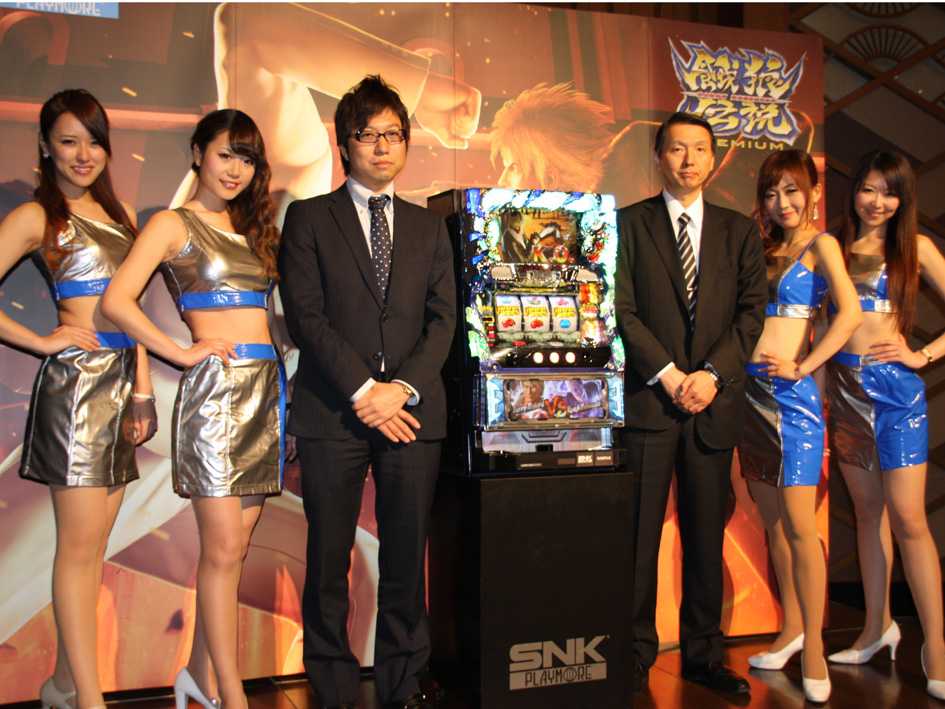 4月11日に東京・千代田区のホテルニューオータニで「餓狼伝説PREMIUM」のプレス発表会が行われた。本機は人気格闘ゲーム・餓狼伝説シリーズとのタイアップ機で、パチスロは今作でシリーズ4作目となる。餓狼伝説の世界観を表現したプレミアムモデルの専用筐体「WILD WOLF」、1セット複数ゲーム数・継続率・ゲーム数上乗せ・セット数上乗せ・複数特化ゾーン・最大上乗せ1000Gなどすべてを叶えるプレミアム仕様のAT「餓狼RUSH」、極限まで作り込まれたプレミアムクオリティの「映像美」、などすべてがプレミアムな本機を編集部礒部が取材してきた。
